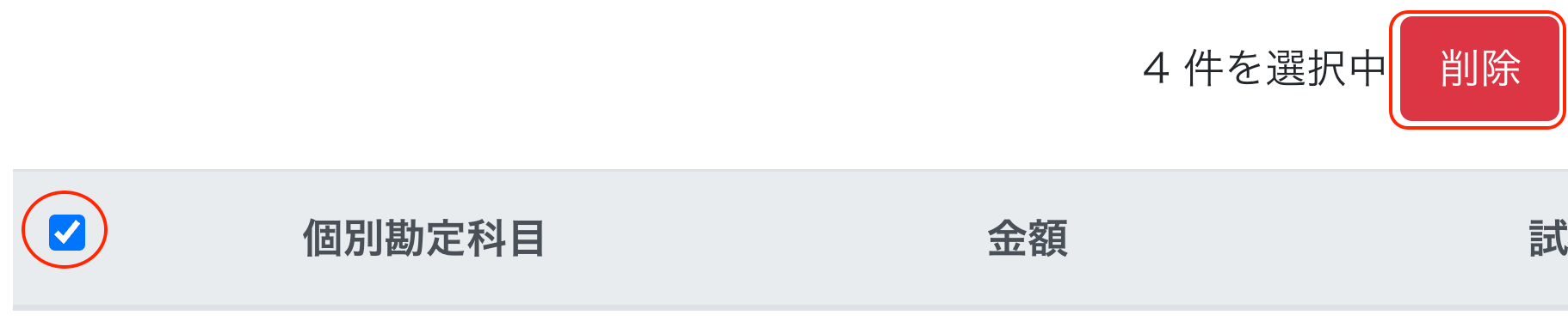 - 削除したい項目にチェック(タイトルバーのチェックは一括チェック)して「削除」ボタンをクリックします