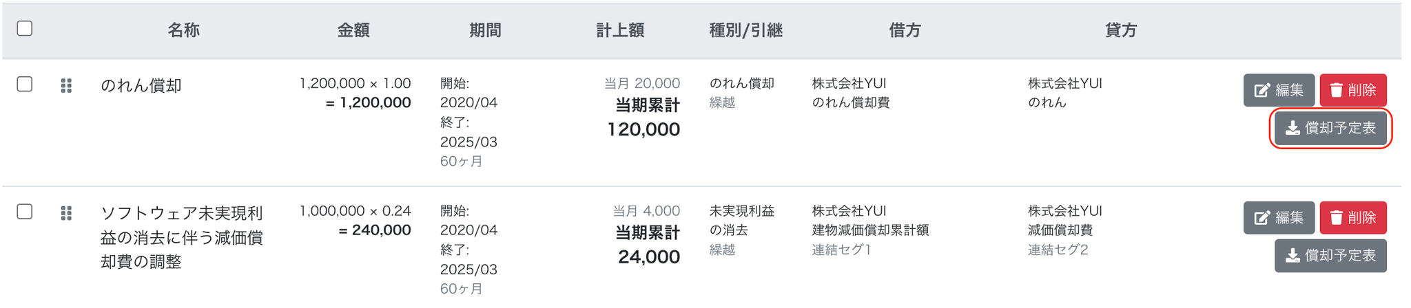 | 名称 | 必須 | のれん償却 | ソフトウェア未実現利益の消去に伴う減価償却費の調整 |