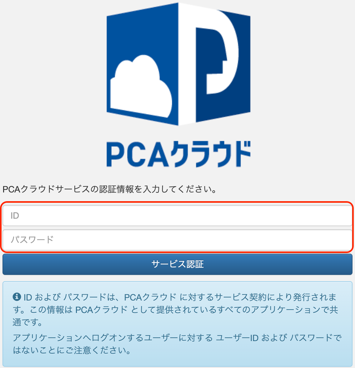 ② 認証情報(「ID」「パスワード」)を入力して「サービス認証」をクリックします